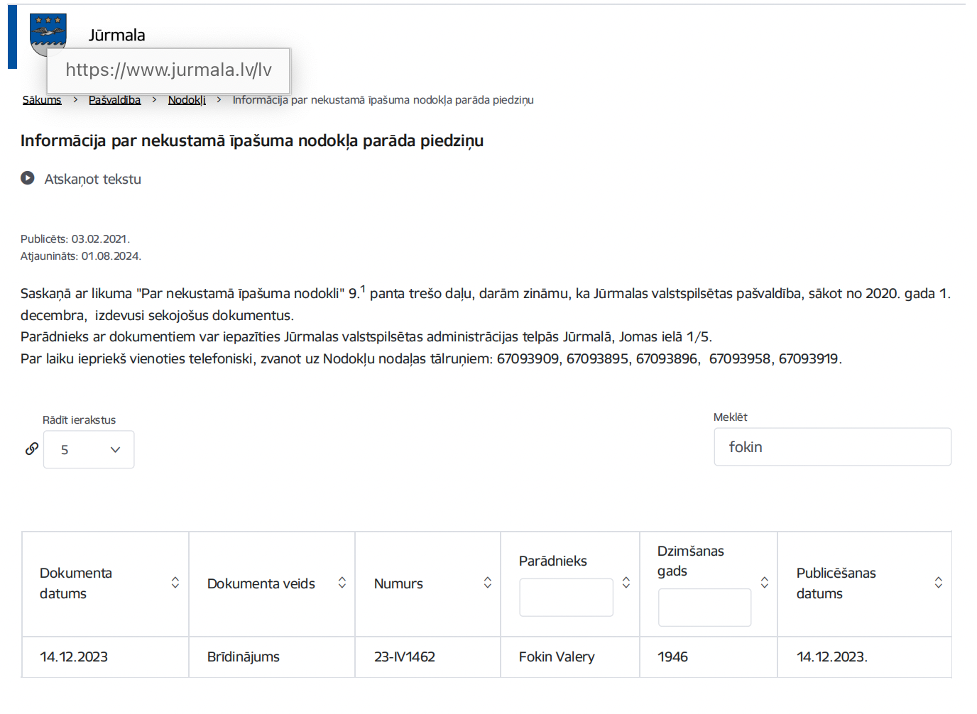 Учитывая то, что и Фокин, и Кривенко значатся в списке должников по налогам на недвижимость в Юрмале, квартиру они сохранили.