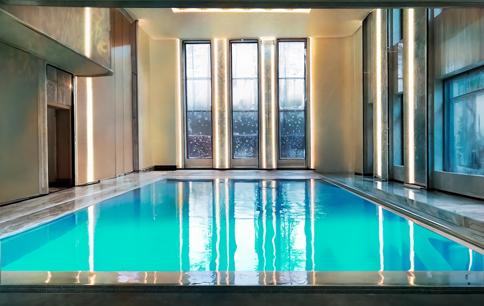Отдельно оборудован огромный спа-центр с 20-метровым бассейном, джакузи, сауной, хаммамом и купелью. Там же находятся бильярдная и помещение под названием «альпийская комната». Есть в доме и отдельный служебный вход для персонала и разгрузки.