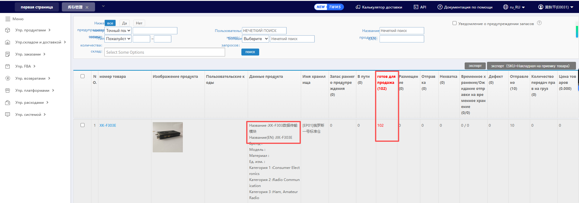 Nordsint запросил список товаров, имеющихся на складе в Москве. В ответ представитель Xingkai Technology отправил скриншоты программ управления складскими запасами, на которых были показаны общие объемы компонентов, доступных в России. Согласно этим данным, на московском складе находилось 102 передатчика данных XK-F303E, готовых к немедленной поставке.