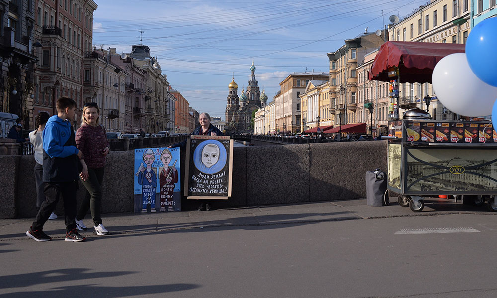 В Санкт-Петербурге художница Елена Осипова, на которую 9 мая напали неизвестные, вновь вышла на пикет со своими работами. Акция была приурочена ко Дню защиты детей, в том числе от ужасов войны.