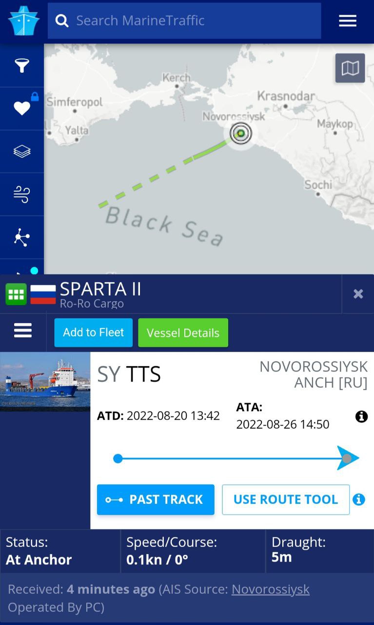 SPARTA II принадлежит подконтрольной Минобороны России компании «Оборонлогистика», попавшей под санкции США. В конце июля Россия также вывезла на нем оружие и военную технику из Сирии. Таким образом она обошла запрет на движение военных кораблей через Босфор и Дарданеллы, введенный Турцией с начала войны в Украине. На судне было как минимум 11 единиц военной техники.