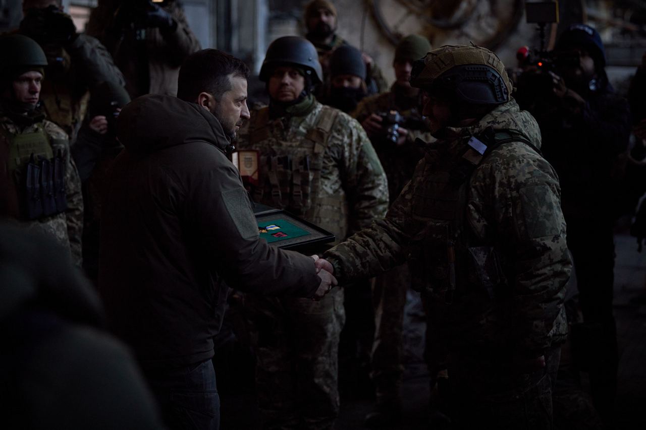 Президент Украины Владимир Зеленский 20 декабря приехал на позиции украинских войск в Бахмуте. Он лично вручил награды украинским военнослужащим.