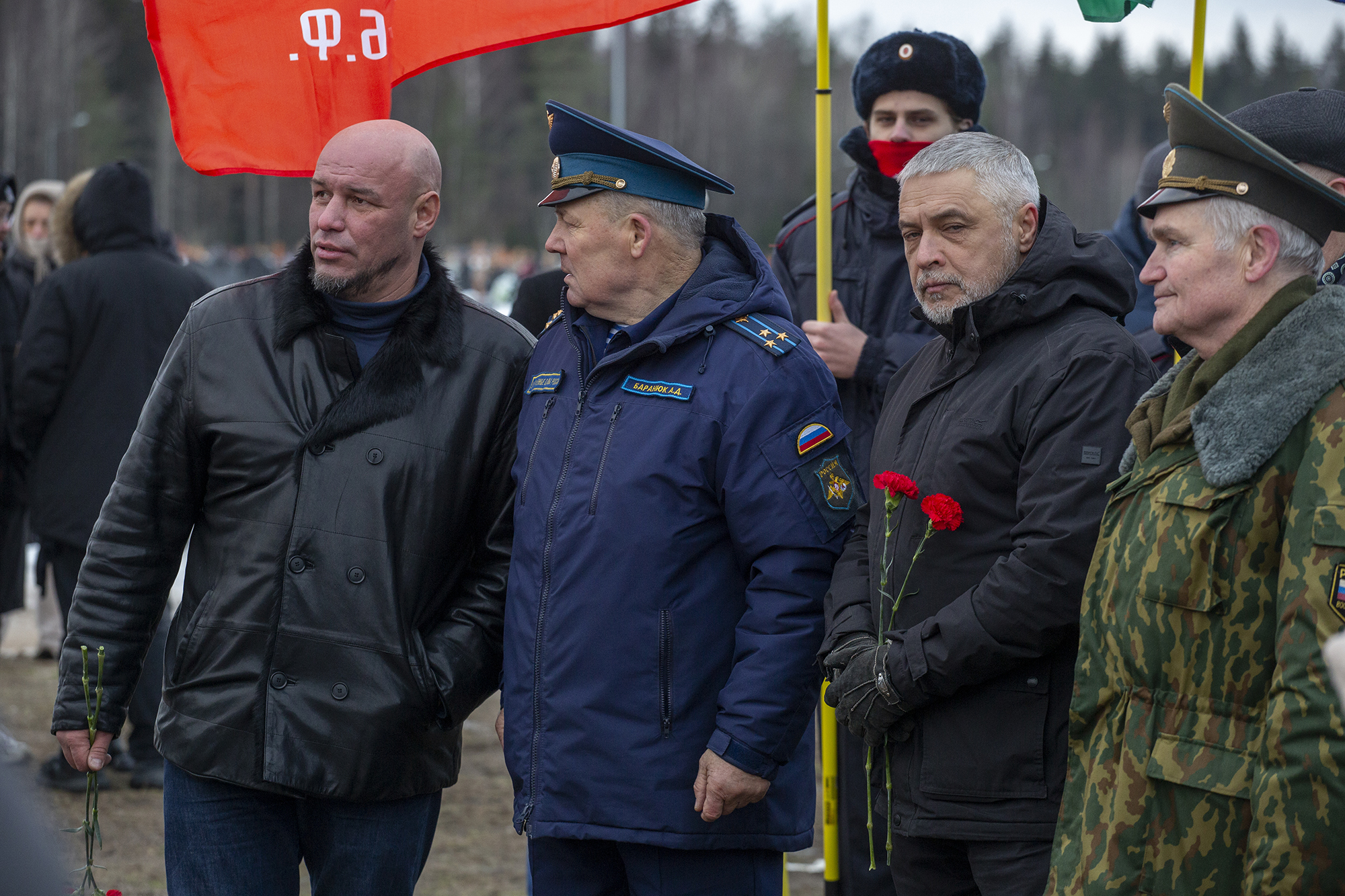 После ухода Пригожина на кладбище централизованно привезли более 20 военнослужащих, которые участвовали в похоронах Меньшикова, а также приехали около 50 человек, в числе которых были члены организации локальных войн «Боевое братство», а также из «молодежной организации ЛДПР».