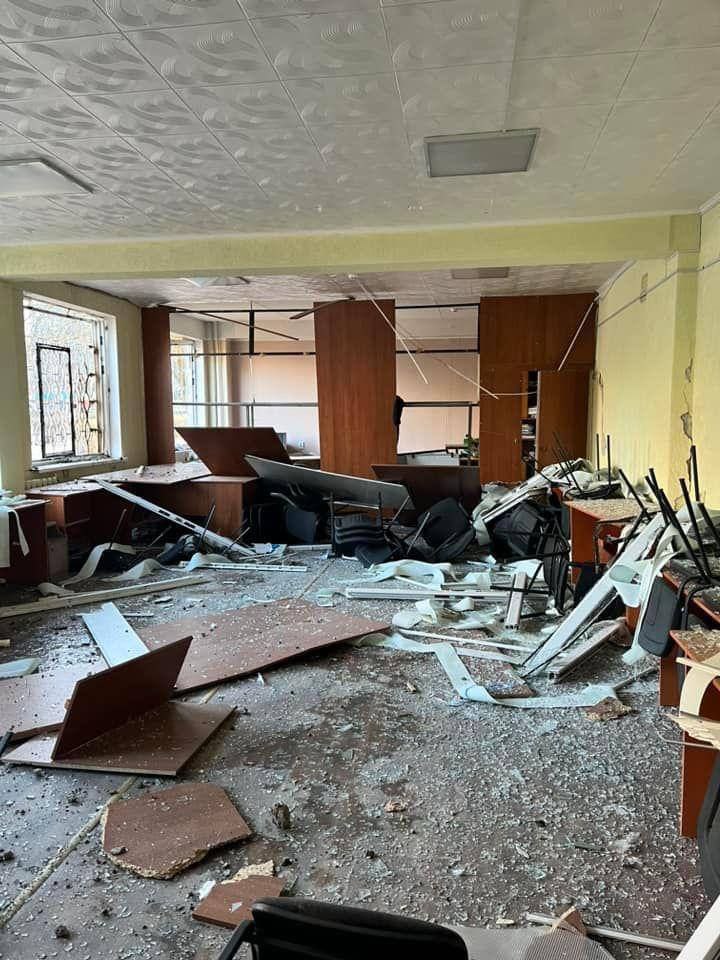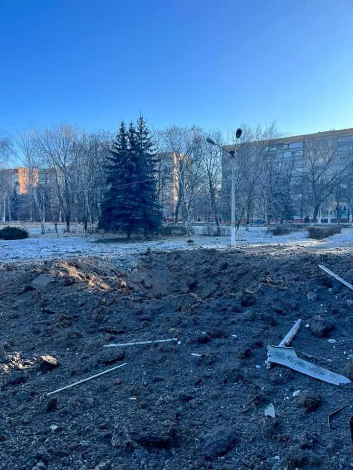 Краматорский горсовет опубликовал фотографии с места обстрела. На них видно, что снаряды прилетели не в здания училища и общежитий, а рядом с ними.
