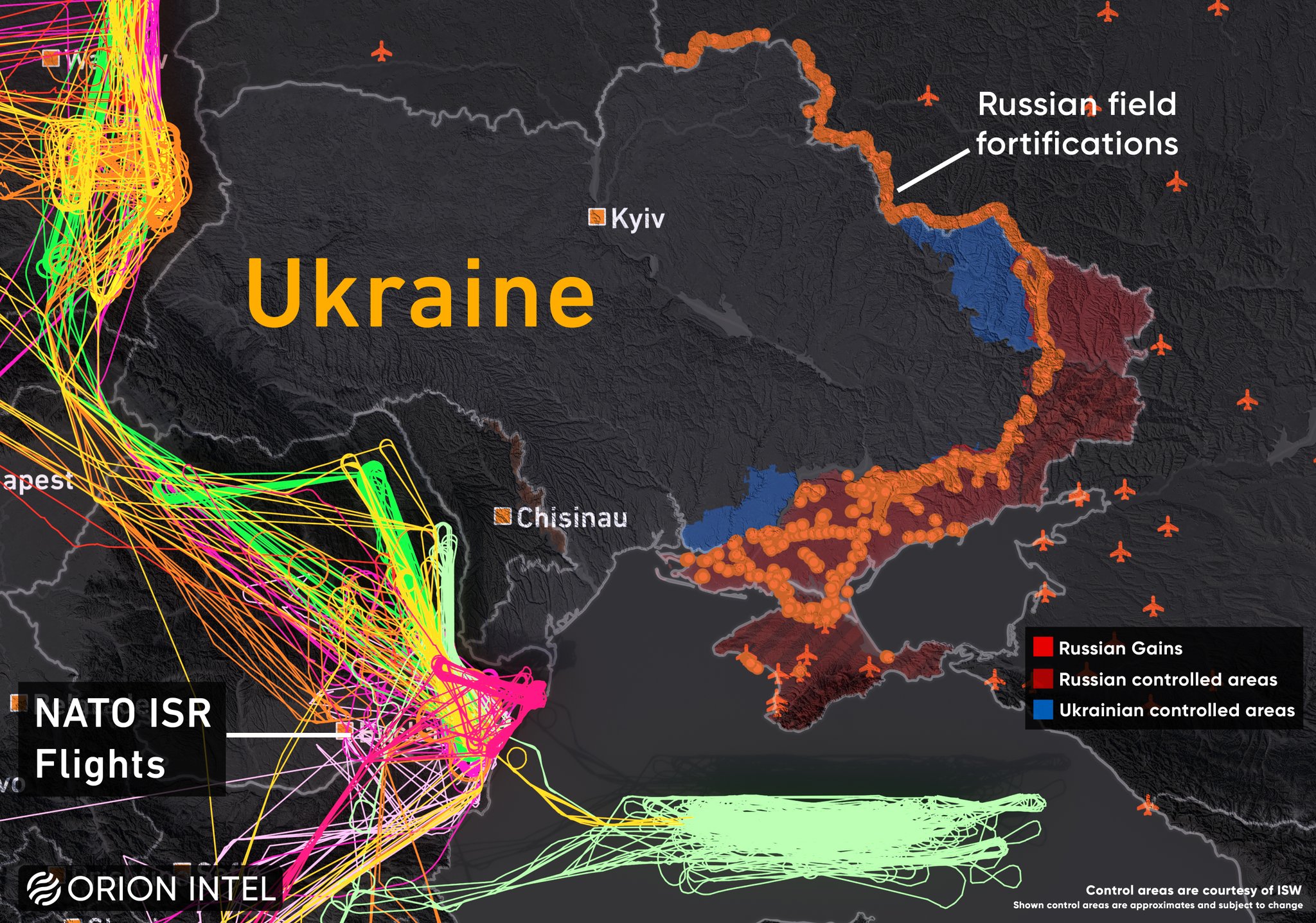 За последние два месяца разведывательные самолеты и беспилотники стран НАТО и Швеции совершили большое количество полетов вблизи Украины и вдоль границ России, сообщает Orion Intel. На карте показаны полеты с 20 января по 20 марта 2023 года. Также аналитики опубликовали видео, на котором видны траектории полетов.