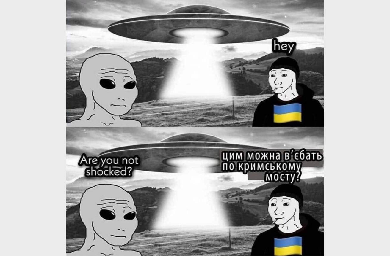 Вечером 19 апреля жители Киева сообщили о странной вспышке в небе, которую поначалу связали с работой ПВО. Государственное космическое агентство Украины заявило, что, вероятнее всего, это было падение метеорита из потока Лирид. Его части выглядят вылетающими из созвездия Лиры. Эксперты подчеркнули, что ежегодно Земля проходит через шлейф кометы Тэтчер, покидающей метеорный поток Лириды. Чаще всего это происходит именно в апреле. Разумеется, в первые же минуты после вспышки начали появляться мемы про НЛО и инопланетян в Украине. Вот некоторые из них.