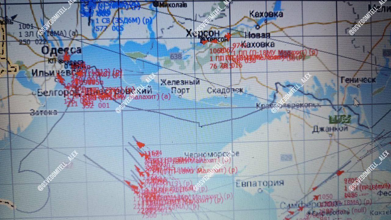 В Telegram-канале Moscow calling опубликованы, как заявляется, изображения налета на Одессу с экрана украинской автоматизированной системы управления «Вираж-Планшет», которая позволяет отслеживать воздушные цели (некоторые из них взяты отсюда).