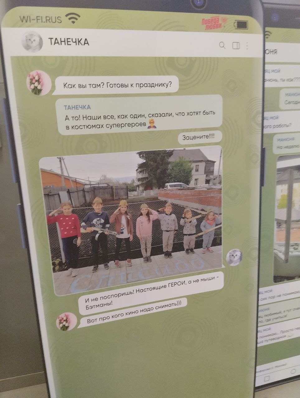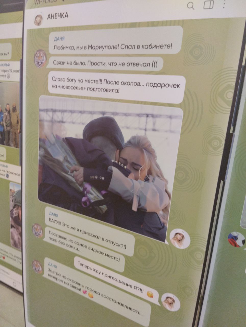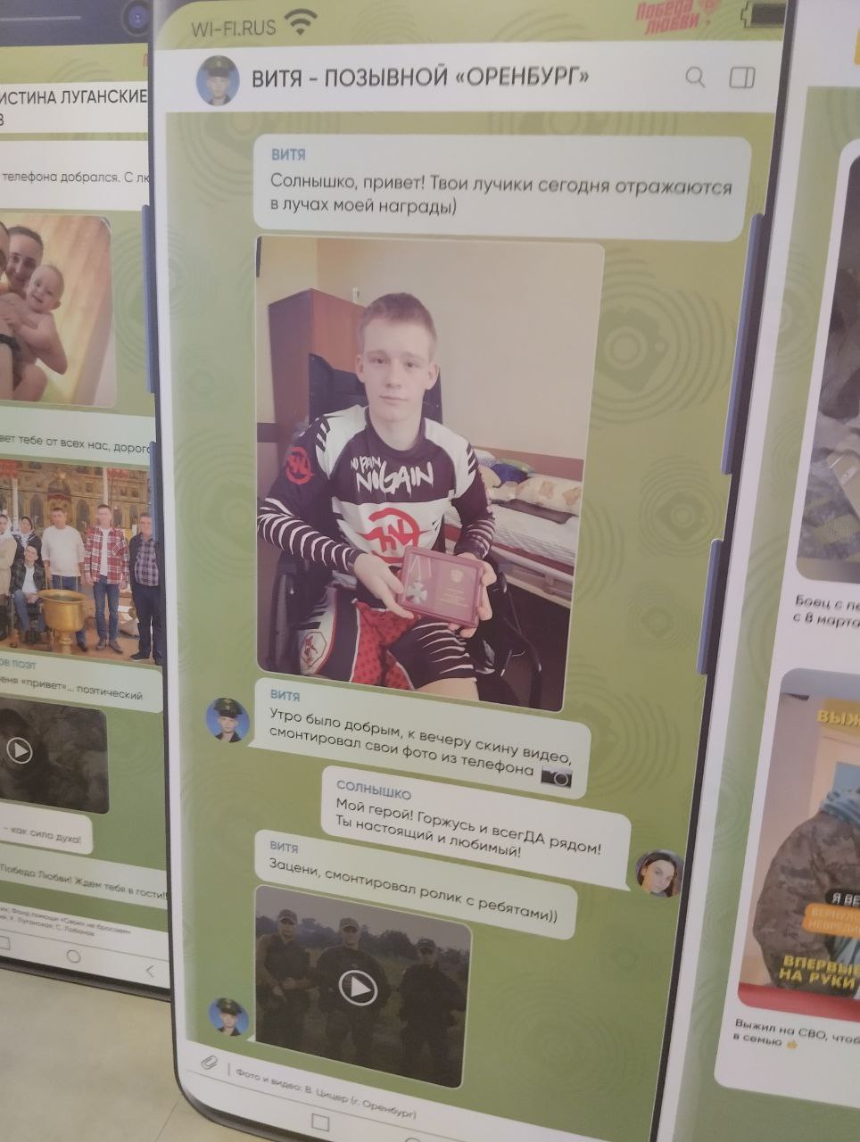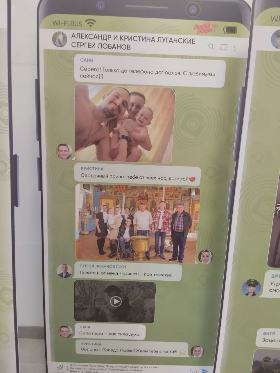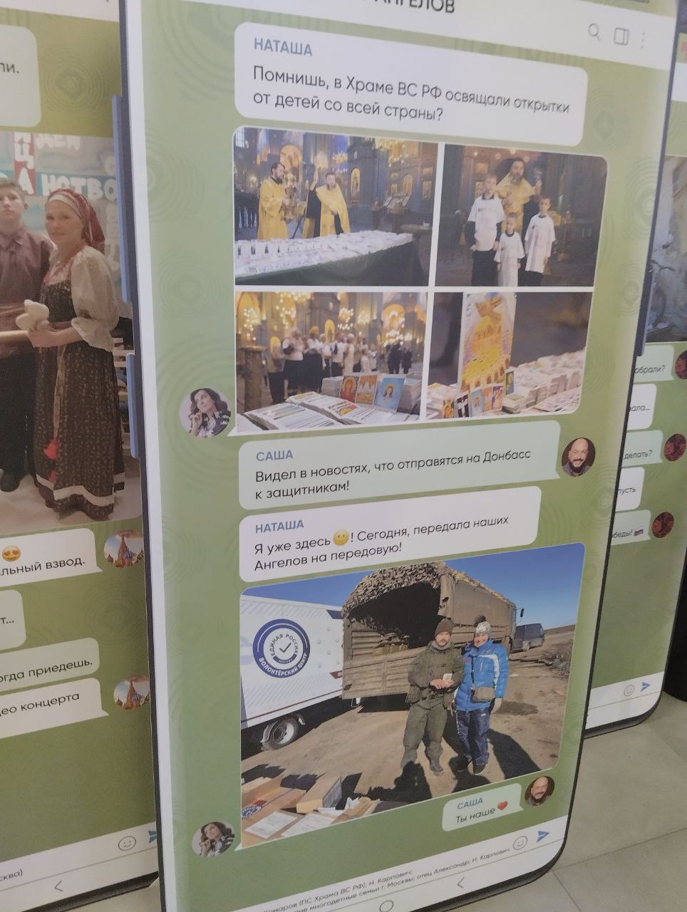 Привезли на форум и колесящую по российским городам выставку «скриншотов переписки» волонтеров и участников войны «Победа любви», автором идеи которой стала зампред Госдумы Анна Кузнецова. Об этой выставке уже писала «Новая вкладка», выяснив, что по крайней мере некоторая часть этих «скриншотов» — фейковая, а на фотографиях, которые якобы пересылают друг другу собеседники, изображены не только реальные военнослужащие и волонтеры, но и кадры из клипа певицы Анны Грейс, участвующей в кремлевских концертах. Авторы на своем сайте отмечают, что «уникальность проекта в его искренности, ведь фото сделаны авторами сообщений».