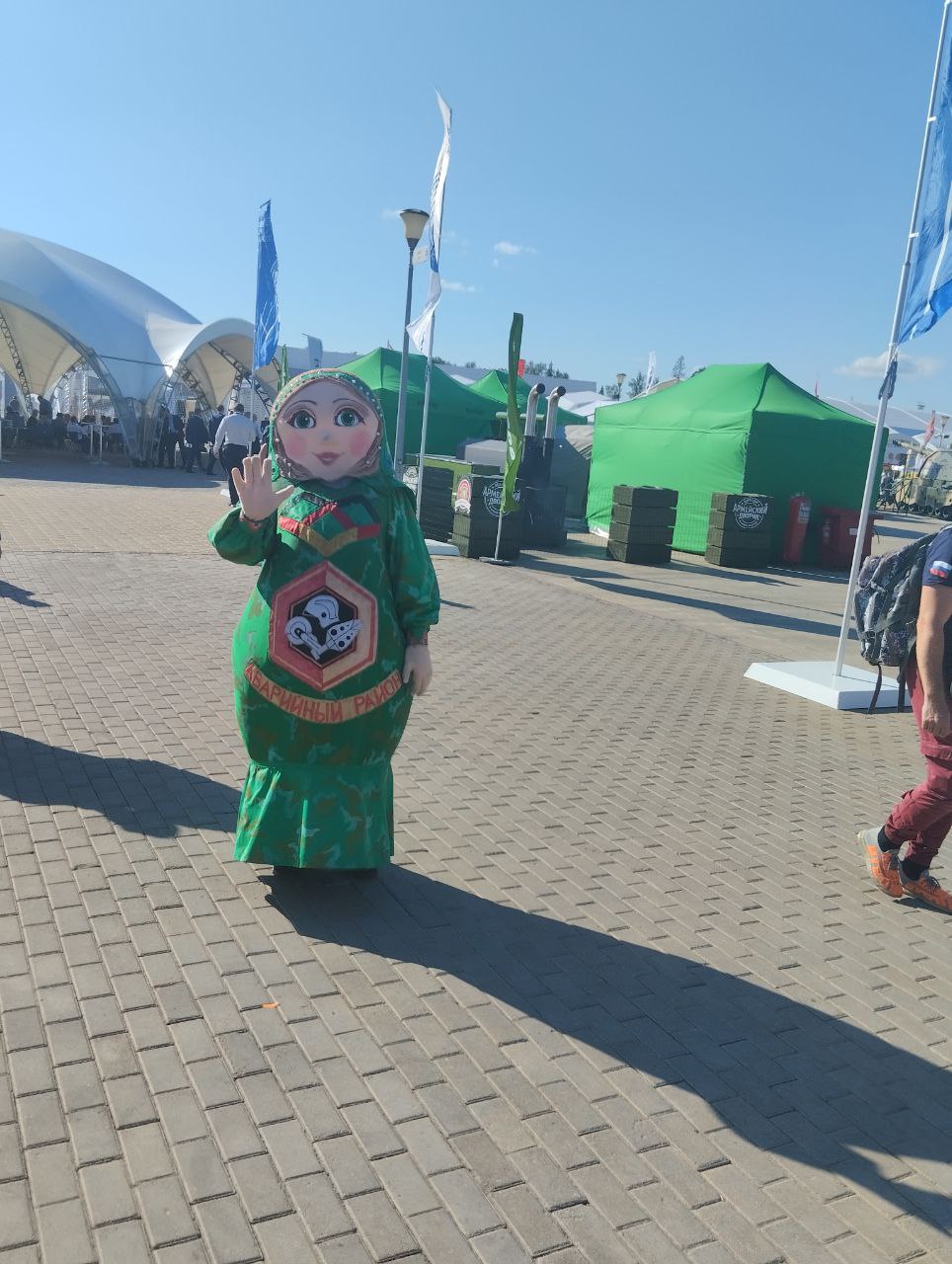 Национальный колорит мероприятию придавали гигантские матрешки. Одна из них представляла собой ростовую куклу цвета хаки с надписью «Аварийный район», другая выглядела максимально футуристично и угрожающе.