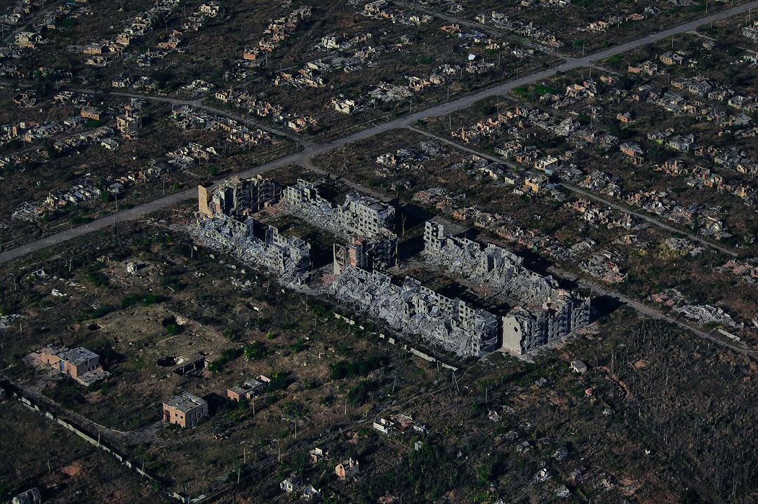 • Снимки полностью разрушенных Бахмута, Клещеевки и Андреевки от Константина и Влады Либеровых;