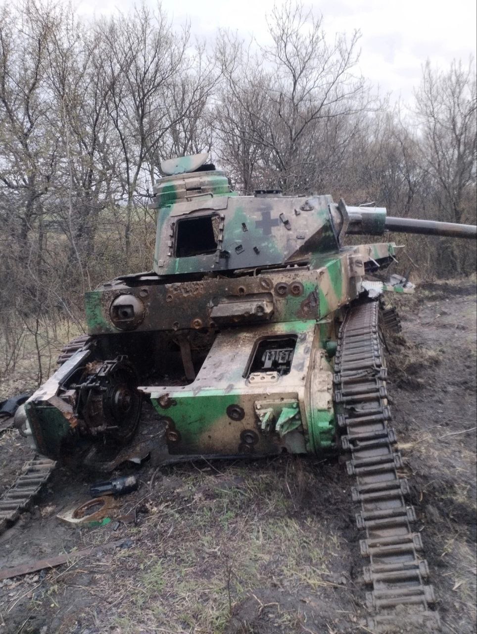- Под Кременной обнаружился музейный немецкий танк Pz. Kpfw. IV Ausf.F2, вероятно, его использовали как ложную цель;