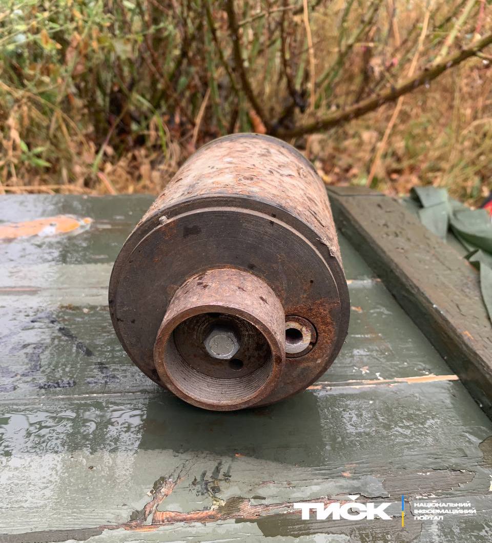 Россияне приспособили мину для стрельбы из противотанкового гранатомета. Неразорвавшийся боеприпас показал украинский Telegram-канал «НІП «Тиск», утверждая, что это мина ОЗМ-72, оборудованная шайбой-переходником, которую использовали вместо штатной гранаты РПГ.