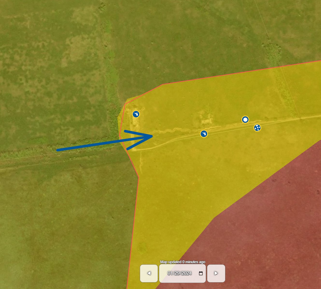 В районе Торецка ВСУ перешли линию соприкосновения, существовавшую до началы полномасштабной войны в феврале 2022 года. Аналитик под ником Andrew Perpetua считает, что украинские войска продвинулись южнее Пивденного (до 2016 года — Ленинское) и заняли там линию траншей.