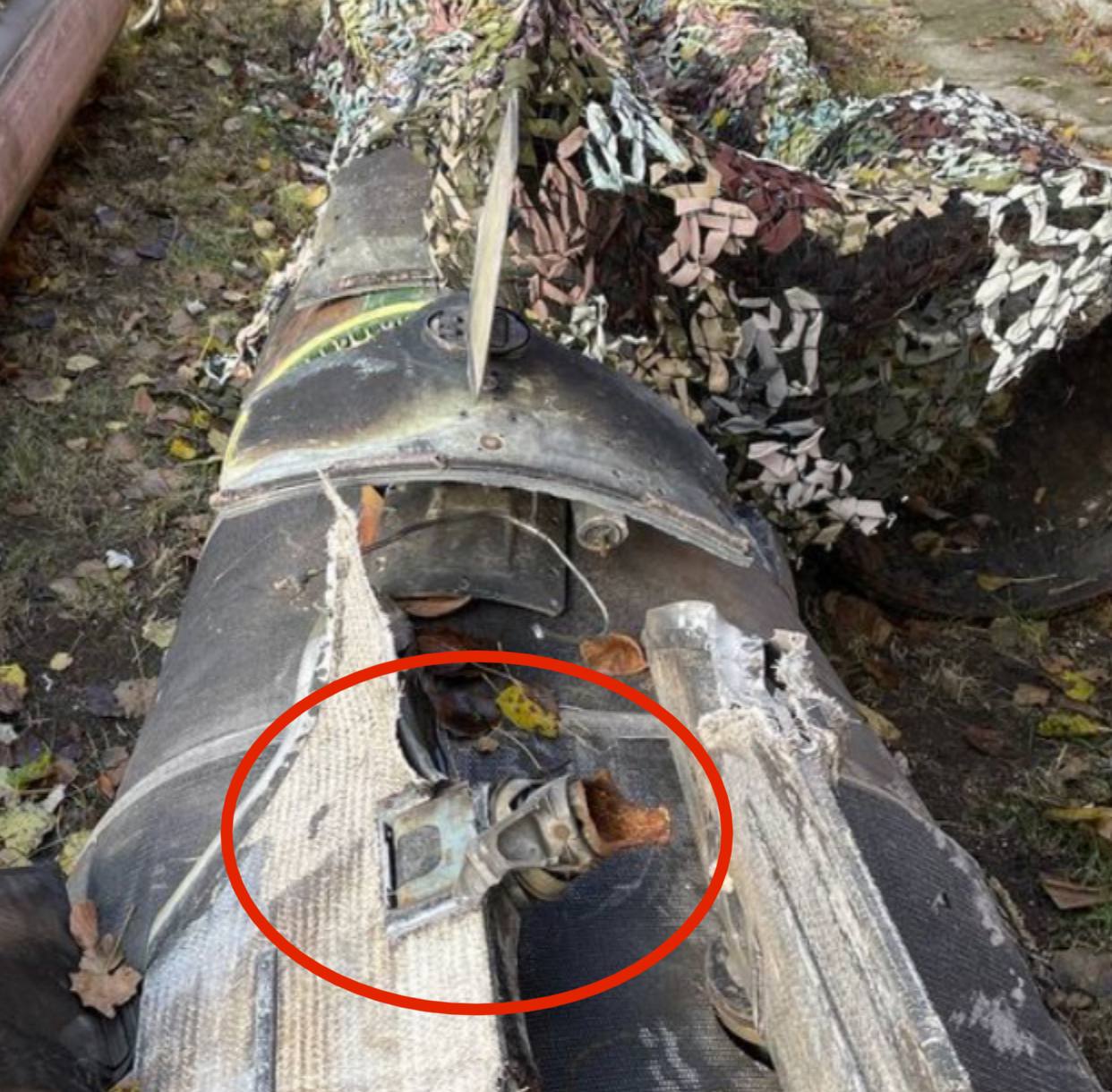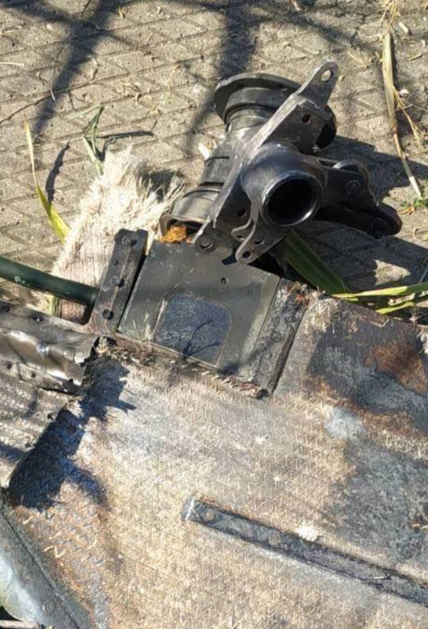В радиусе 200 метров от взрыва нашли обломки боеприпаса, которые, как писало прокремлевское издание Mash, предварительно идентифицированы как части ракеты «Точка-У». Однако в украинском канале «Полковник ГШ» их опознали (1, 2) как детали ЗУР, выпущенной из ЗРК С-300/С-400.