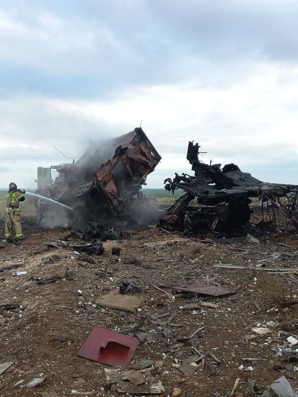 Российские военные попытались поразить с помощью ракет возле станции около Покровска в Донецкой области грузовик, с которого разгружали боеприпасы. В результате, судя по видео, две из них взорвались в посадке, а еще одна прилетела в железнодорожные пути. В то же время этот ролик был изначально опубликован с пояснением, что был уничтожен склад боеприпасов, хотя ни вторичных детонаций, ни горения на видео не наблюдается.