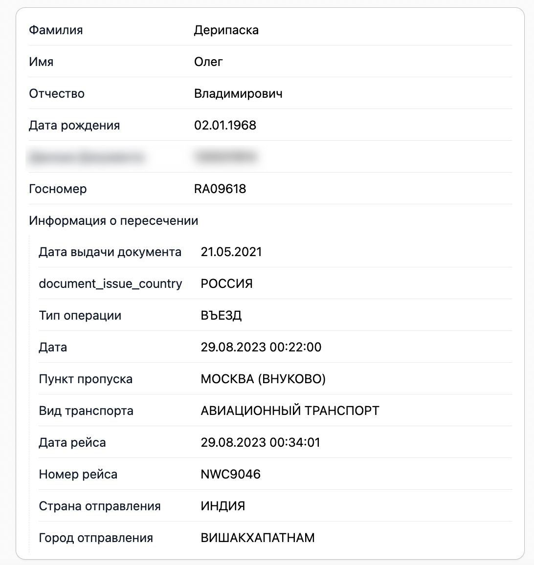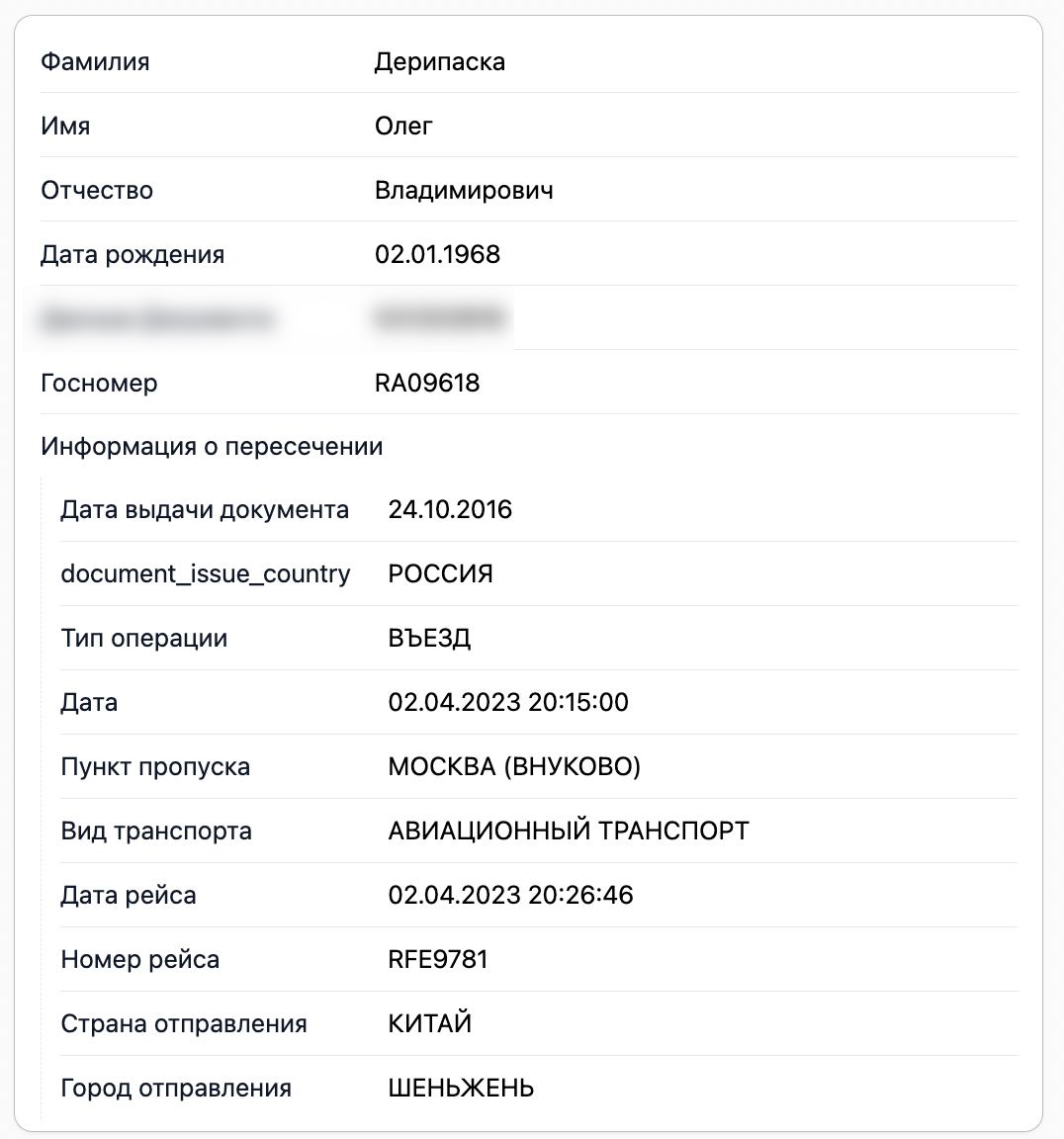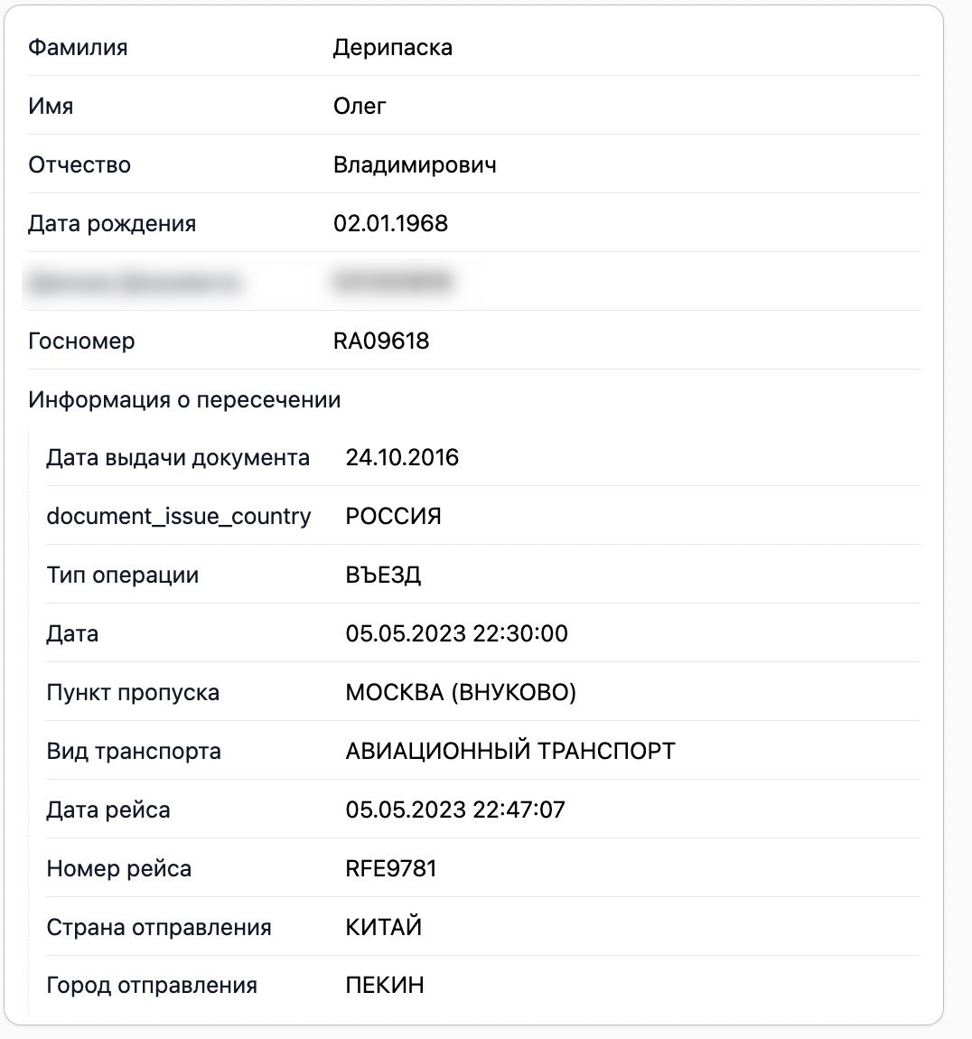Присутствие Дерипаски на борту во время этих перелетов доказывают данные погранслужбы ФСБ, которые есть в распоряжении The Insider.