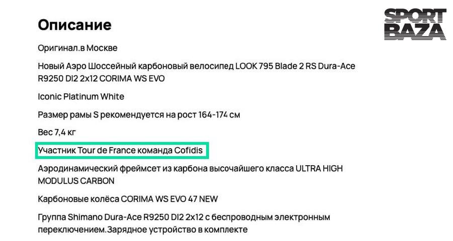 Продавец, с которым связался журналист Sport Baza, утверждает, что велосипеды находятся в Москве. Документов на них нет, потому что поставка, по его словам, была неофициальной. При этом объявления о продаже датированы концом июня — до официальной публикации Cofidis о краже.
