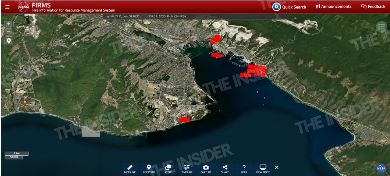 Судя по данным сервиса по отслеживанию пожаров NASA Firms, в предполагаемом месте удара по позициям С-300/С-400 также возникло возгорание. Спутники фиксируют три крупных очага возгорания в районе порта города, где расположены нефтеналивные терминалы.