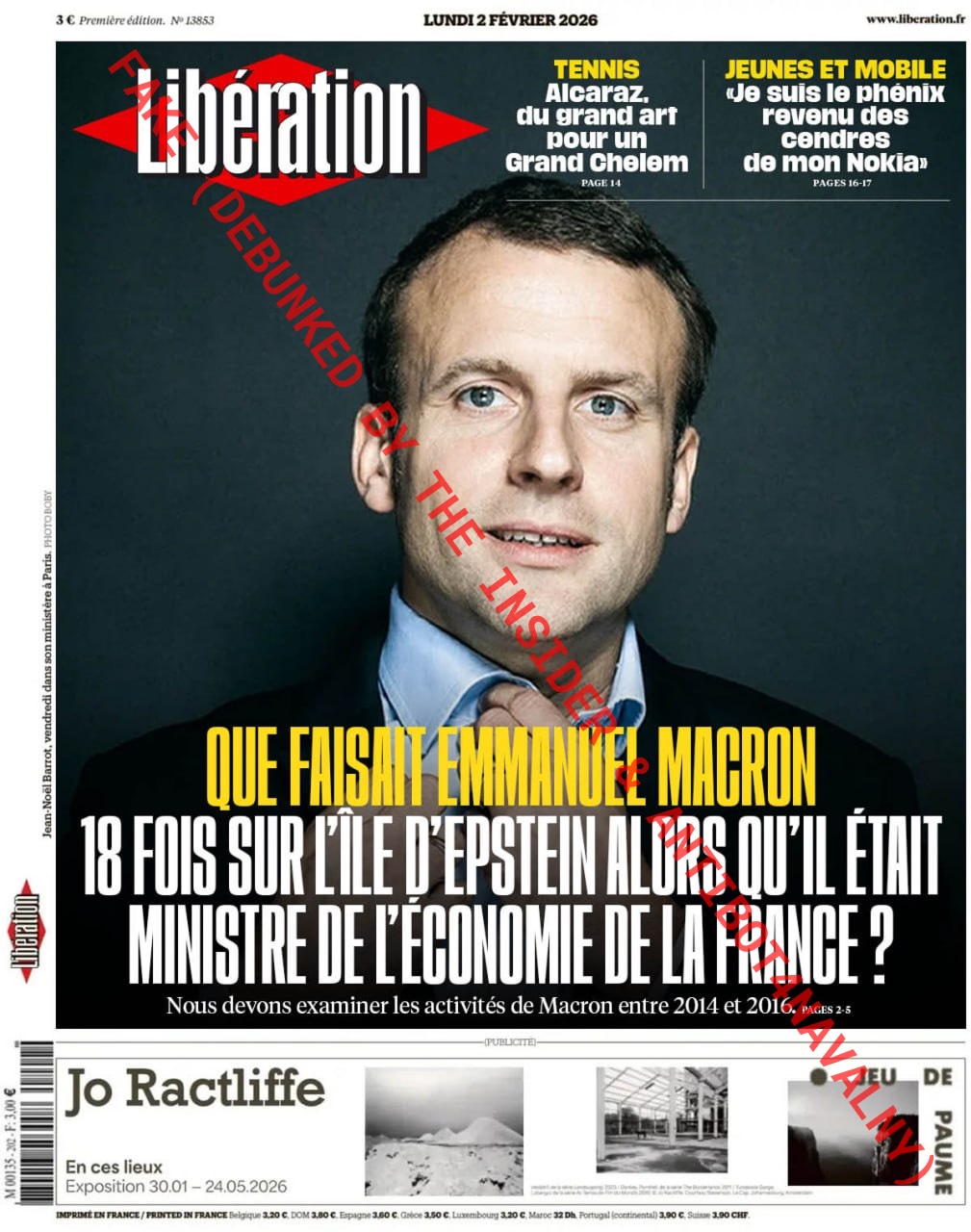 Дезинформация также распространяется через сфабрикованные обложки французских изданий. На поддельной обложке La Croix (реальная обложка номера) утверждается, что Елисейский дворец отказался комментировать визиты Макрона на остров Эпштейна. Фальшивые обложки Le Parisien (реальная обложка номера) и Libération (реальная обложка номера) от 2 февраля 2026 года утверждают, что Макрон 18 раз за 18 месяцев посещал остров Эпштейна в период работы министром экономики.