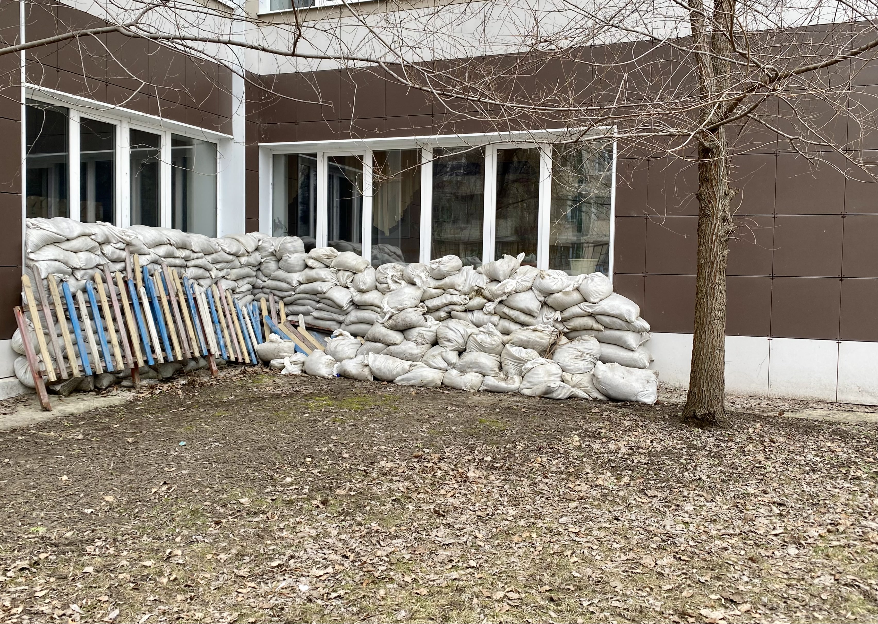 По пути я делаю фото детского сада, который обложен мешками с песком, – ко мне тут же подбегает мужчина с удостоверением местной теробороны. Просит показать журналистское удостоверение. «Гулял с собакой – увидел вас. Мы тут бдим: вот утром одного уже задержал и сдал полиции, пусть разбираются», – хвастается мужчина.