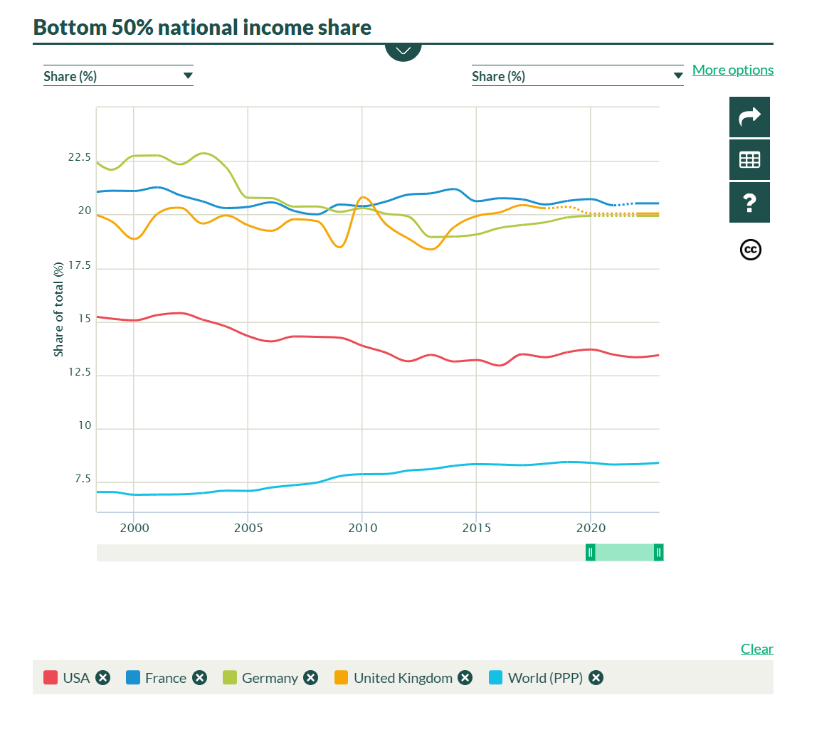 Что же касается неравенства, которое остается одной из острейших тем для таких стран, как США, то во Франции оно ниже, чем в большинстве развитых (и тем более развивающихся) стран и за последние четверть века если и выросло, то несущественно: